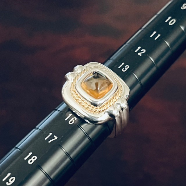 現在は廃盤の1990年代の作品で、その他にブラック オニキスやラピス ラズリ、アメジストが用いられたものやストーンが付かないものまで幅広く展開されましたが、シトリンが使用されたものはその他の石に比べるとヴィンテージでも出現する数は少ないお品物です。