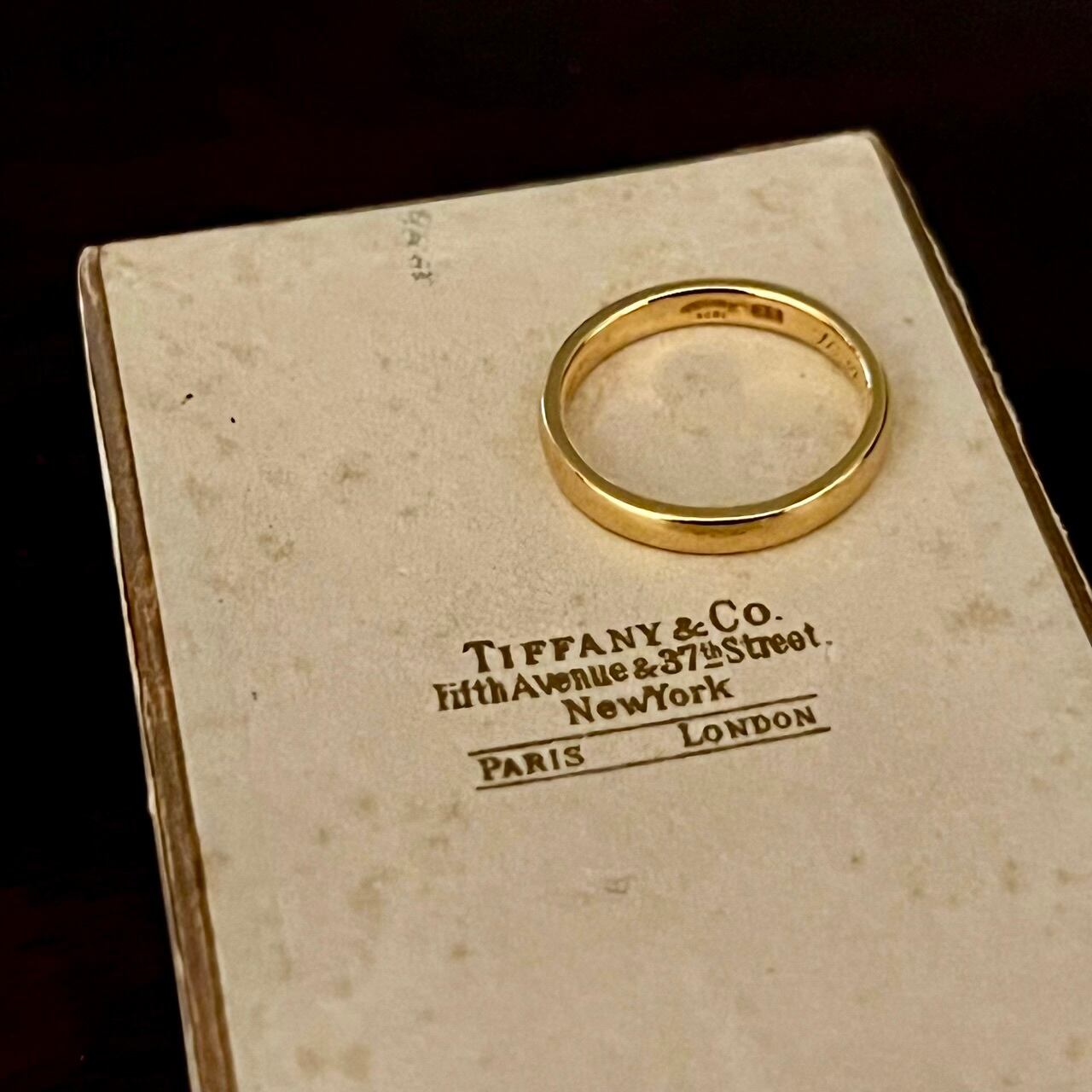 このティファニーの22Kバンド リングは当時も主力商品だったのか、いくつか幅のバリエーションが存在し、後年には18Kの物もラインナップに加わります。当店でも数点コレクションしていますが、今回販売する個体はサイズがUS7=約14号とVINTAGEでも出てくる数が少ない男性も着用可能な大きめのものになります。