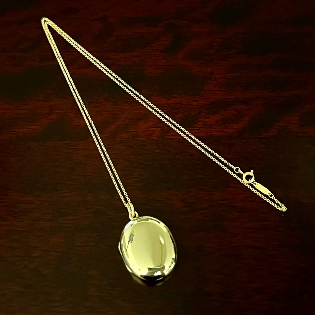 ティファニー社のロケットは古くから様々なバリエーションが存在しますが、こちらは14金で製作された肉厚で大きなオーバル型のロケット ペンダント、1990年代の作品です。