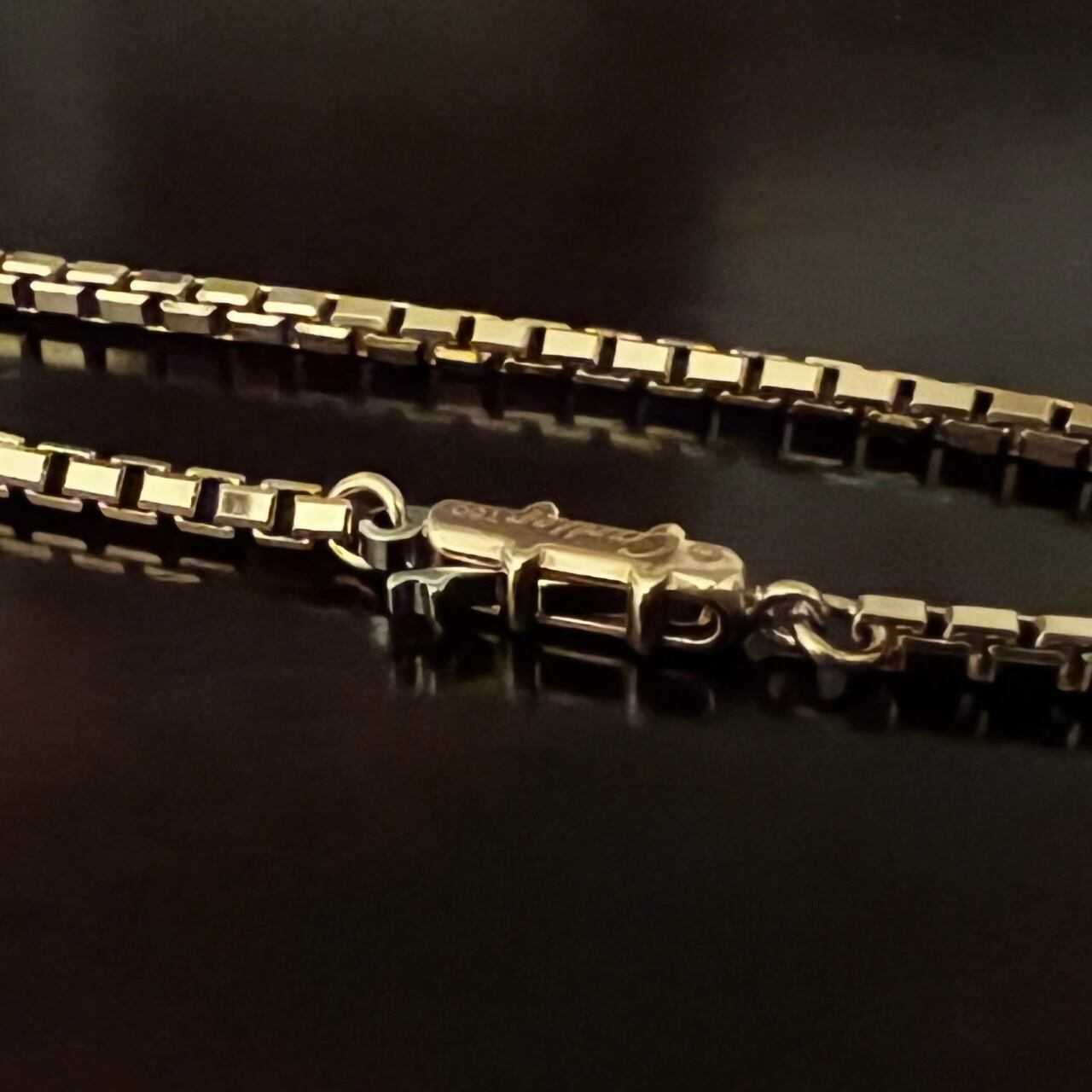 ボックス型に角張った形状のベネチアン チェーンは狭い間隔で連なり密度が高く、