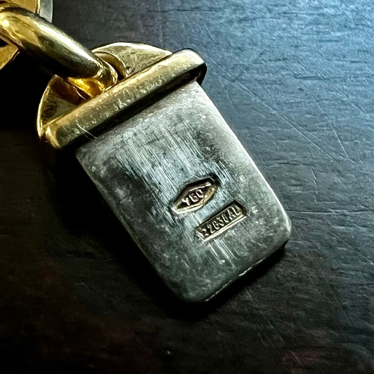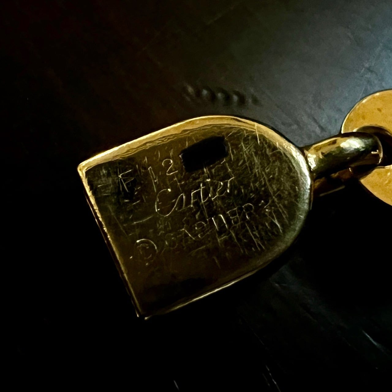 ホールマークは留め具の受けにCartierの刻印とシリアルナンバー、留め具の受け部分に18金製を示す750と、イタリアの都市アレッサンドリアの特定のメイカーが製造したことを示すメイカーズマークが刻まれています。
