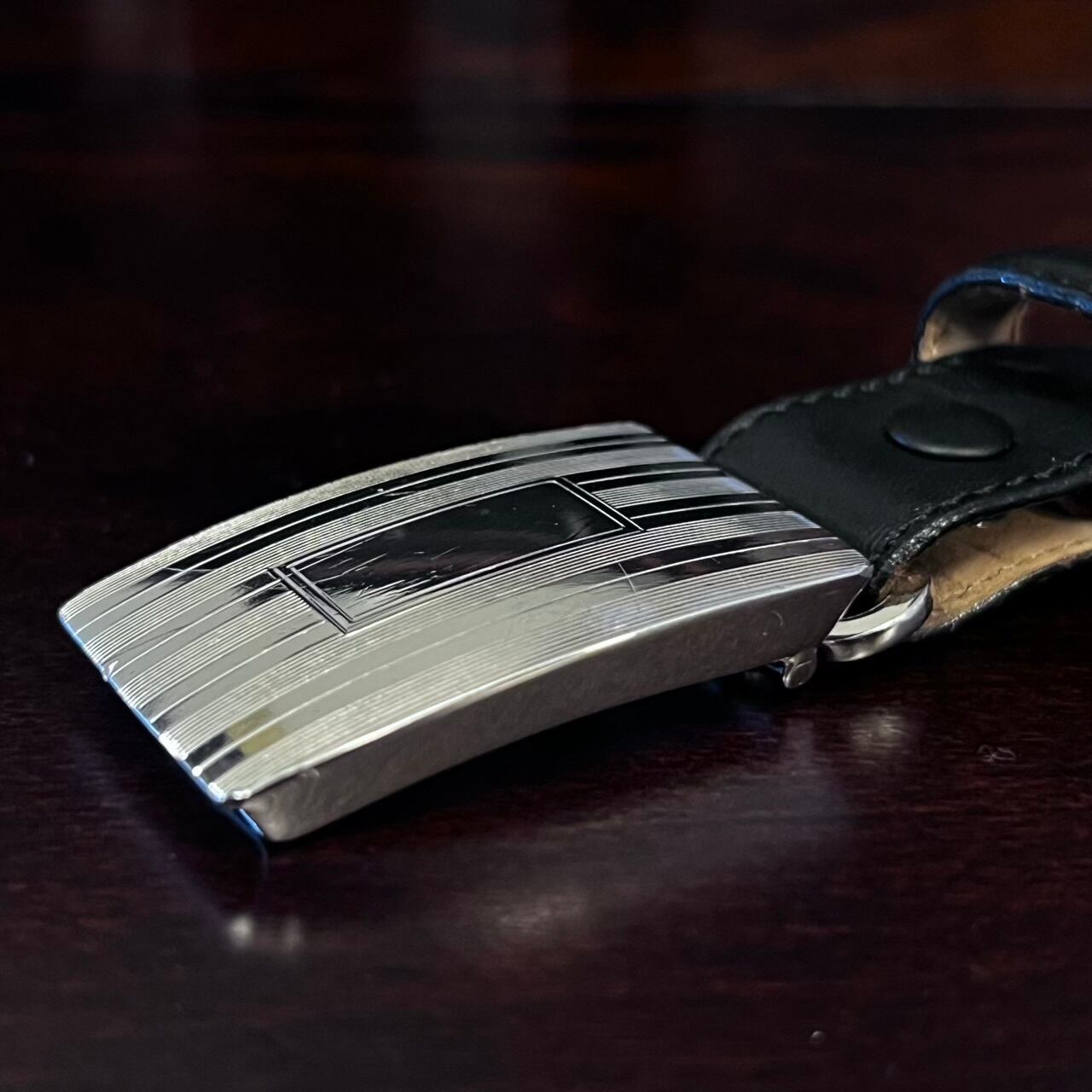 VINTAGE TIFFANY & CO. Engine Turned Slide Buckle Sterling Silver / Black Calf Leather Belt 42” | ヴィンテージ ティファニー エンジンターン スライド バックル スターリング シルバー / ブラック カーフ レザー ベルト 42インチ