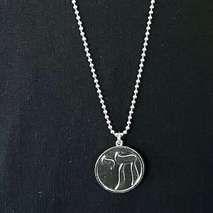 ヘブライ語で“Chai”の文字が入ったメダル チャームをペンダント トップにセットしたロング ネックレスです。