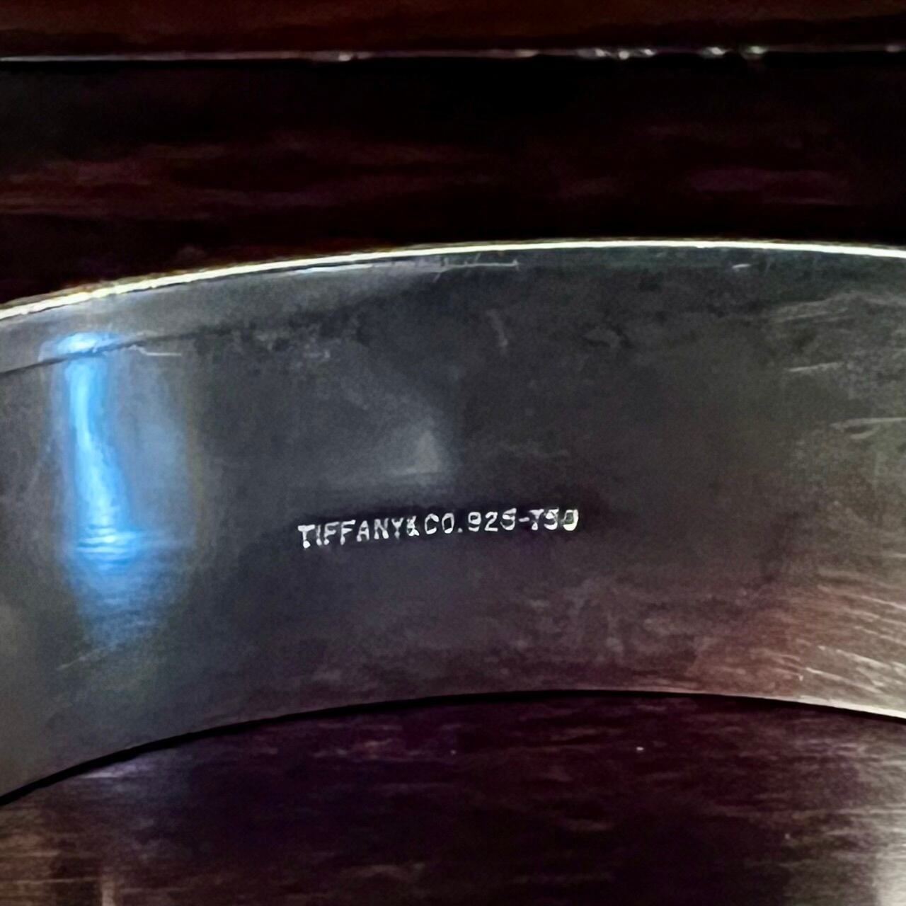 裏面はフラットで中央にティファニーの刻印、シルバー925を示す925と18金を示す750のホールマークが入ります。