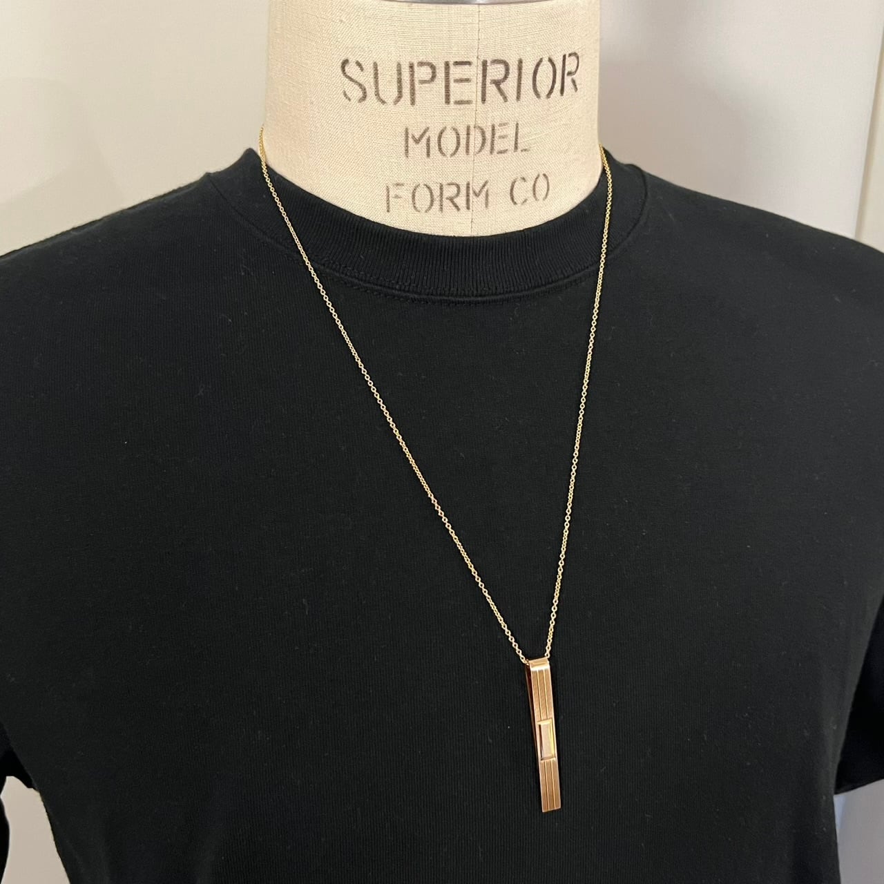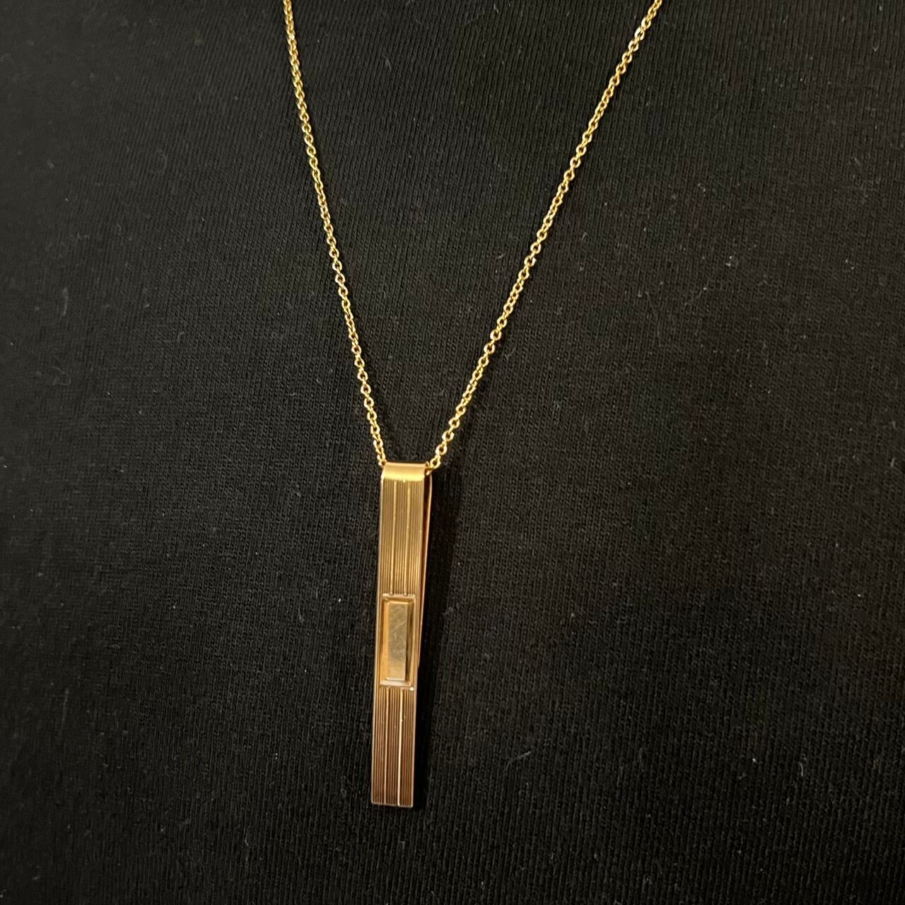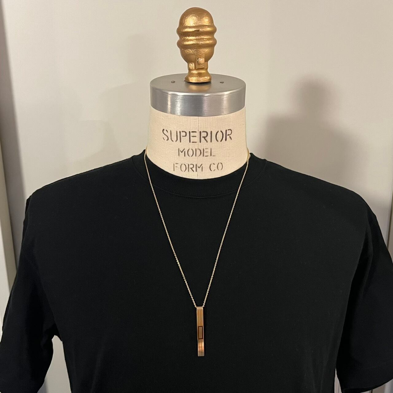 タイ クリップとしてはもちろんですが、画像のように長めのチェーンを通してネックレスのペンダント トップにしても良い雰囲気です。