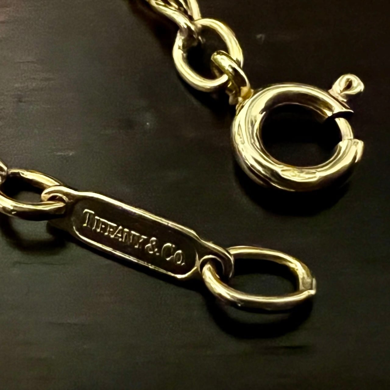 留め具はスプリング クラスプで脇のプレートにはティファニーのホールマークと18金製を示す750の刻印が入ります。