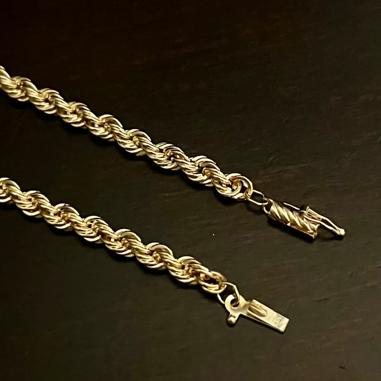 1990年代に入るとティファニーでは似たデザインでスターリング シルバーのロープにゴールドのアクセントが入ったコンビの物などが多く流通しますが、14金のみで製作されたロープ ブレスレットは比較的数が少ない印象です。