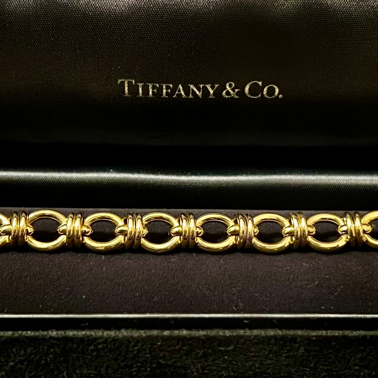 オーバル型のリンクの間に2連のサークル リンクが組み合わされたティファニーの18Kゴールド製ブレスレット。