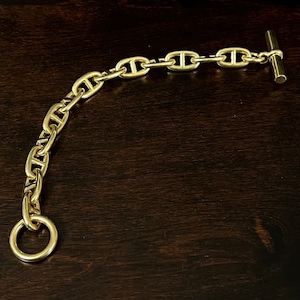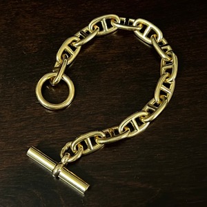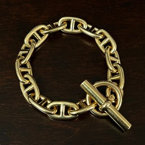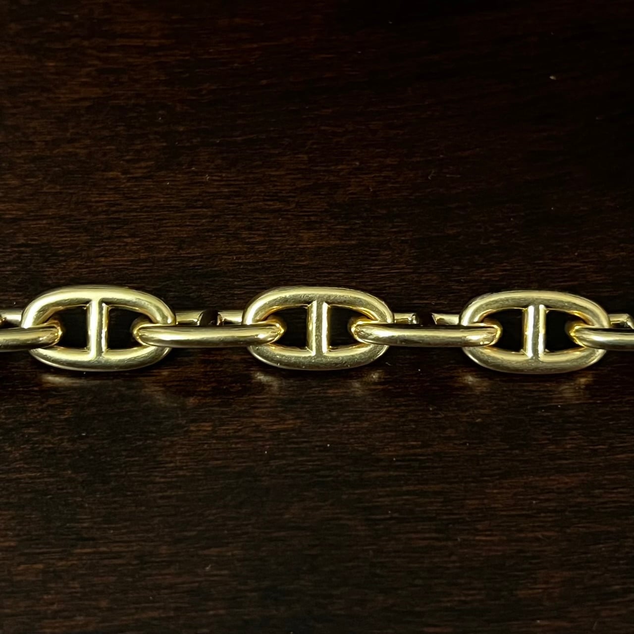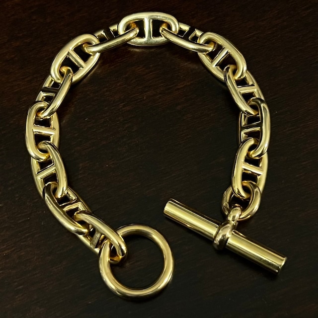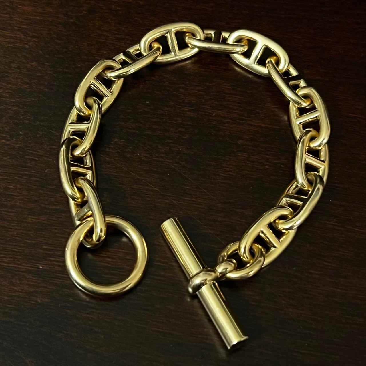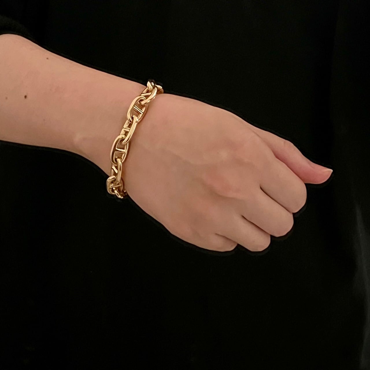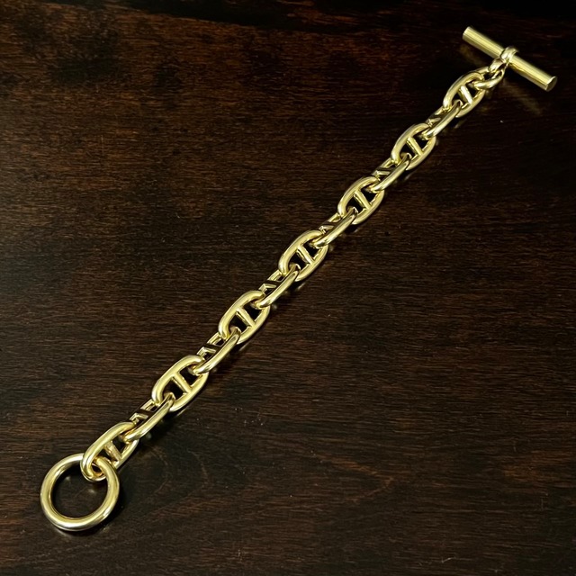 80年以上前の1938年に誕生したHERMESの名作Chaine d'Ancre(シェーヌ ダンクル)、ネックレスやリング、イヤリングなど様々なジュエリーが展開されていますが、こちらは2000年代後半の作品、18Kローズゴールドで製作されたGM13コマのブレスレットです。