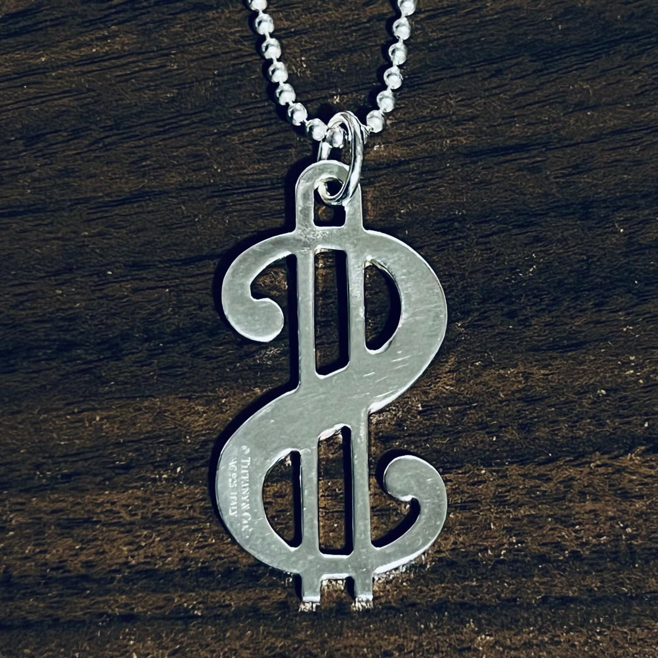 1940年代にティファニーで発売されていた$(USドルのシンボルマーク)のジュエリーからデザインを採用し近年復刻されたペンダントをトップにセットしたロング ネックレス。